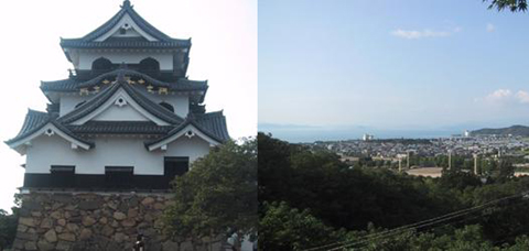 ↑(左)絶妙な屋根の配置が、かっこいい!! (右)天守からは琵琶湖が見えます