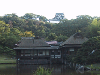↑玄宮園から彦根城を望む