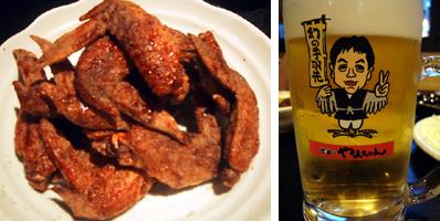 山ちゃんの手羽先はコショウが利いたピリ辛味。ビールがよく合うと思います。